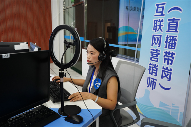 图为互联网营销师(直播带岗)项目参赛选手正在比赛