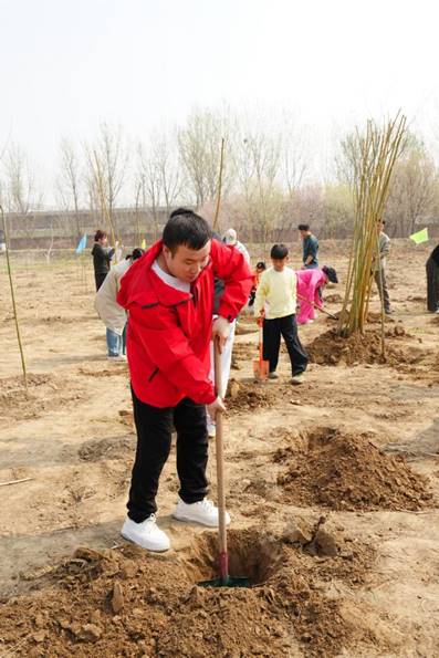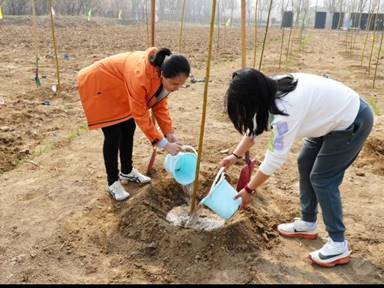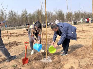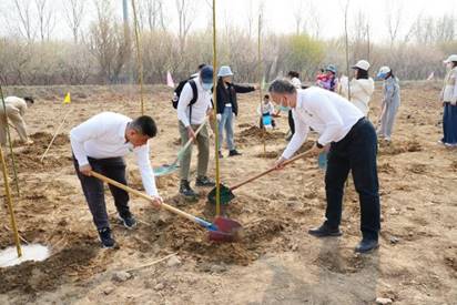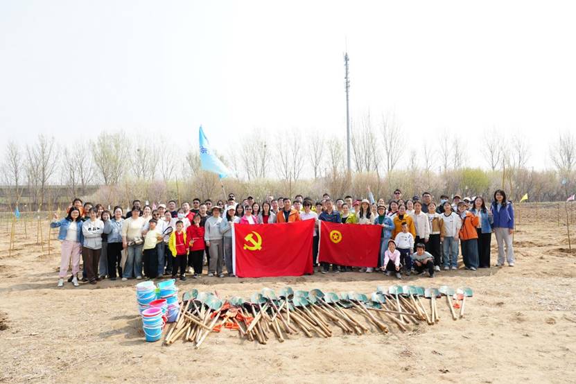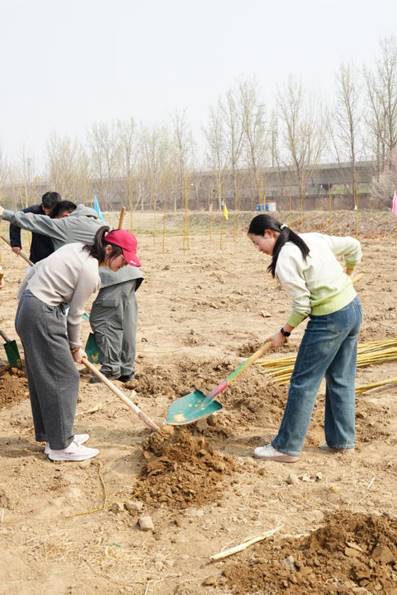 在植树造林科普讲解后,大家两人一组,分工协作,领取树苗和工具,按照“挖坑、回填、栽植、覆土、培坑、浇水”的标准流程,合力栽下一棵棵黄柳树苗。经过两个多小时的辛勤劳动,百余株新苗在春风中挺立,为生态园增添了一片生机。植树结束后,大家纷纷在寄语卡上写下美好祝愿,悬挂在树苗上,并合影留念。