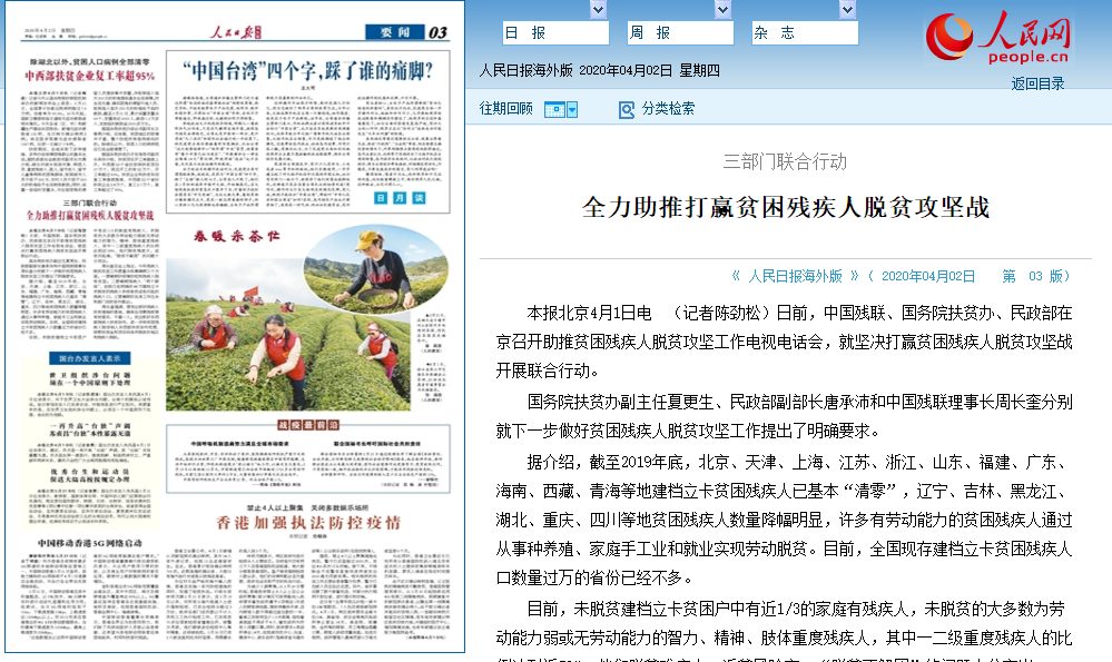 人民日报海外版 三部门联合行动 全力助推打赢贫困残疾人脱贫攻坚战
