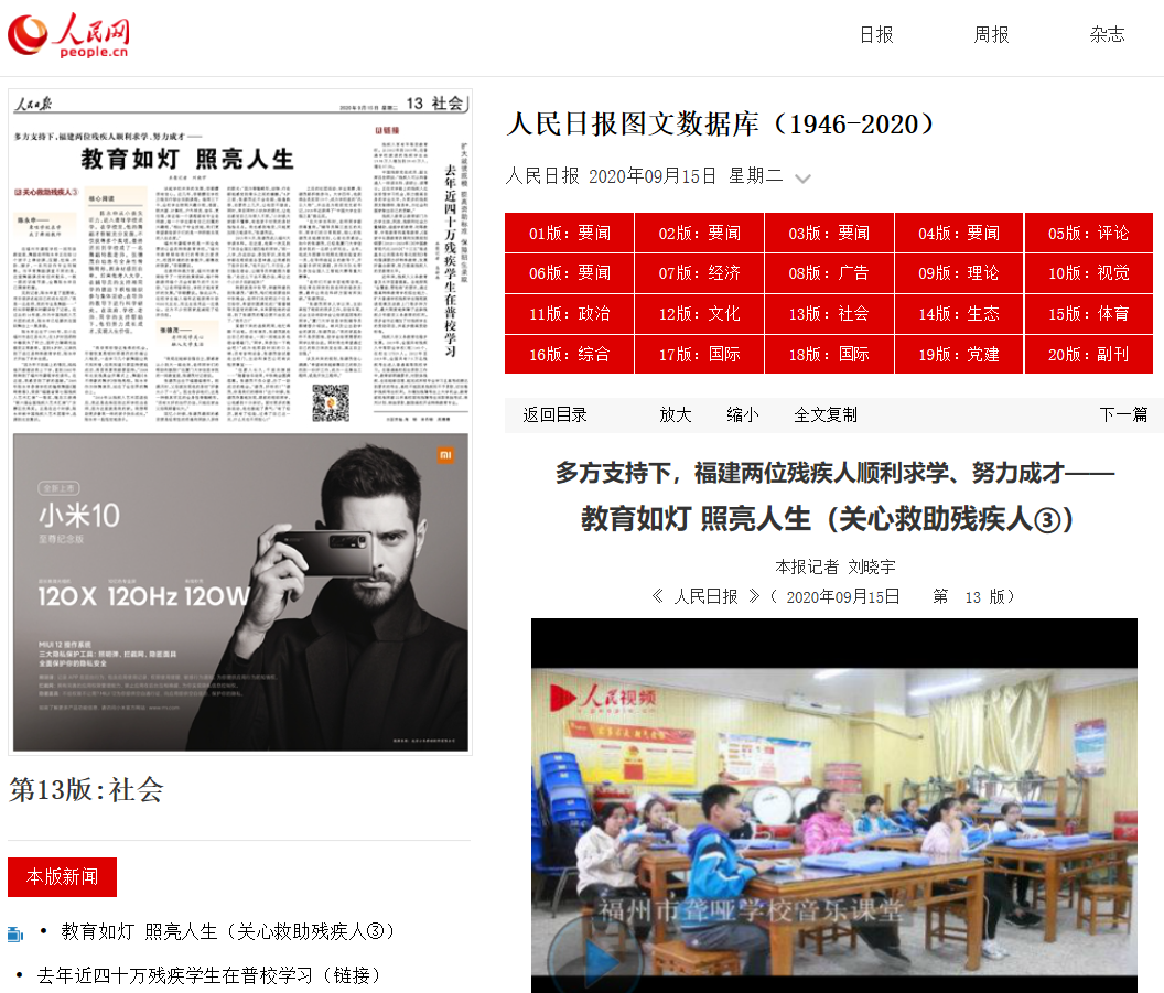 人民多方支持下,福建两位残疾人顺利求学、努力成才——教育如灯 照亮人生(关心救助残疾人③)日报