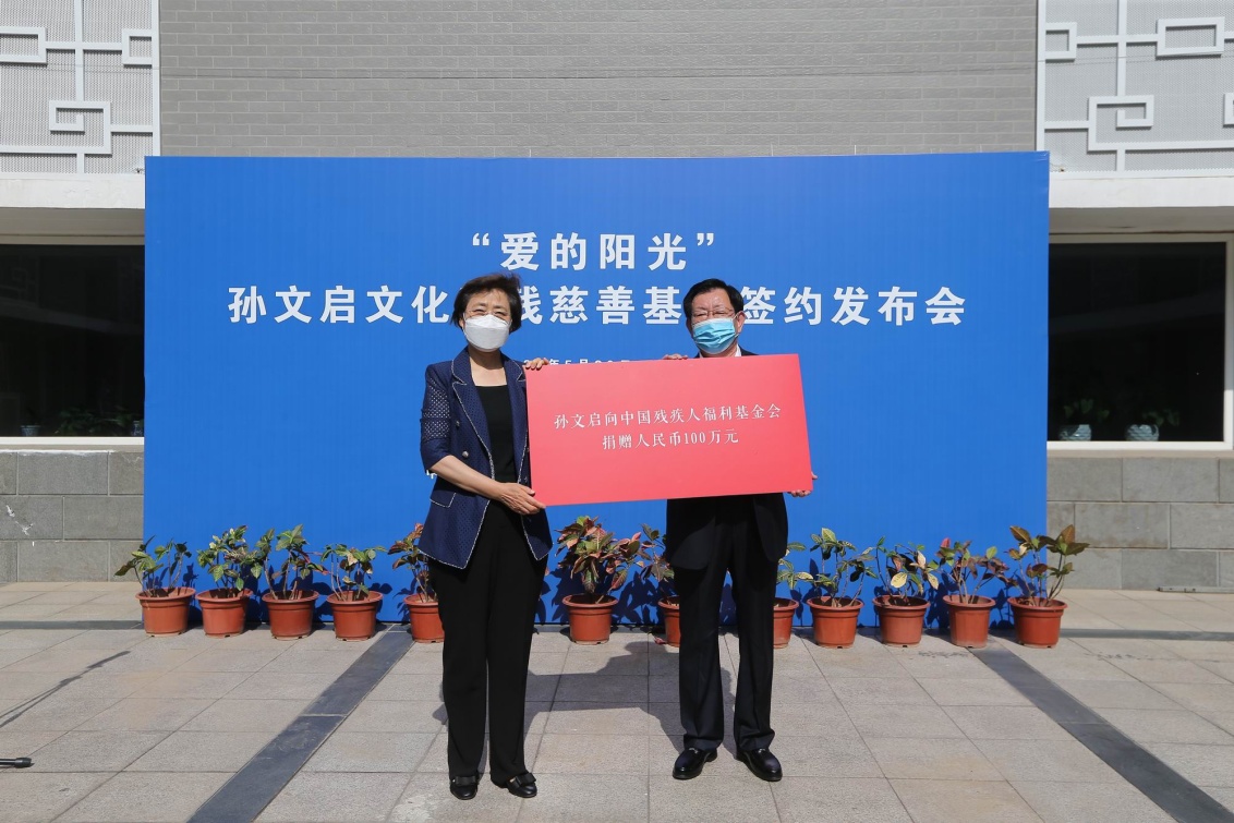 此次孙文启先期捐赠100万元,将全部用于“爱的阳光”孙文启文化助残公益项目。