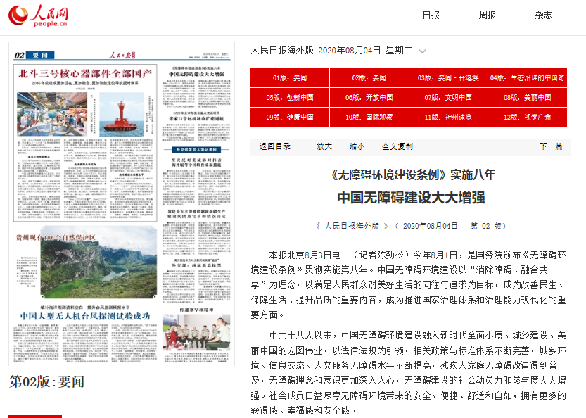 人民日报海外版 《无障碍环境建设条例》实施八年 中国无障碍建设大大增强