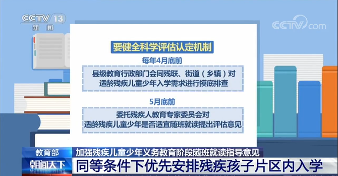 中央电视台《朝闻天下》教育部 加强残疾儿童少年义务教育阶段随班就读指导意见 同等条件下优先安排残疾孩子片区内入学