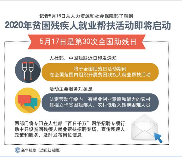 新华社图表,北京,2020年5月16日 图表:2020年贫困残疾人就业帮扶活动即将启动 新华社发 边纪红 制图