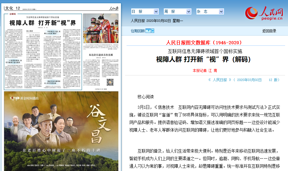 有研究表明,人类获取信息总量中,83%来自视觉,10%以上来自听觉。可想而知,互联网“盲道”完备,对视觉、听觉障碍群体意义重大。