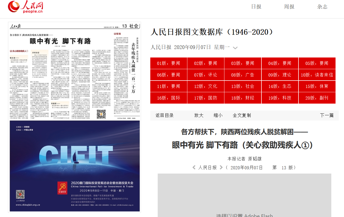 人民日报 各方帮扶下,陕西两位残疾人脱贫解困—— 眼中有光 脚下有路(关心救助残疾人①)