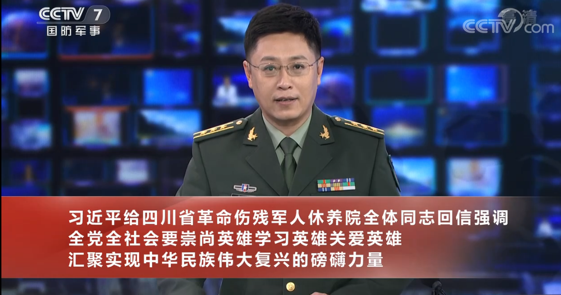 中央电视台《军事报道》 习近平给四川省革命伤残军人休养院全体同志回信强调 全党全社会要崇尚英雄学习英雄关爱英雄 汇聚实现中华民族伟大复兴的磅礴力量