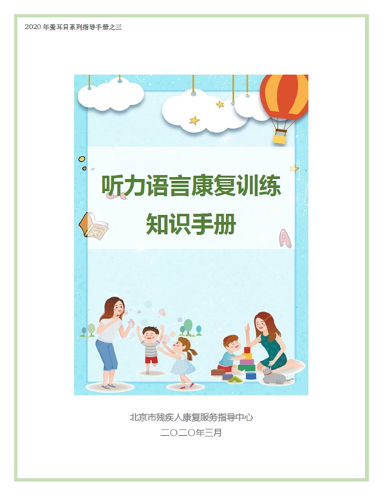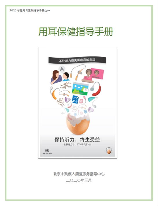 今年“世界听力日”的主题是“保持听力,终生受益”。北京残联结合当前疫情防控形势及“爱耳日”主题,组织专业技术人员编写了一套四本的系列指导手册,分别是《用耳保健指导手册》《助听器使用指导手册》《听力语言康复训练知识手册》《听觉口语法简介》,从2月29日至3月3日连续四天分四期在“北京残联”微信公众号等平台上推送。
