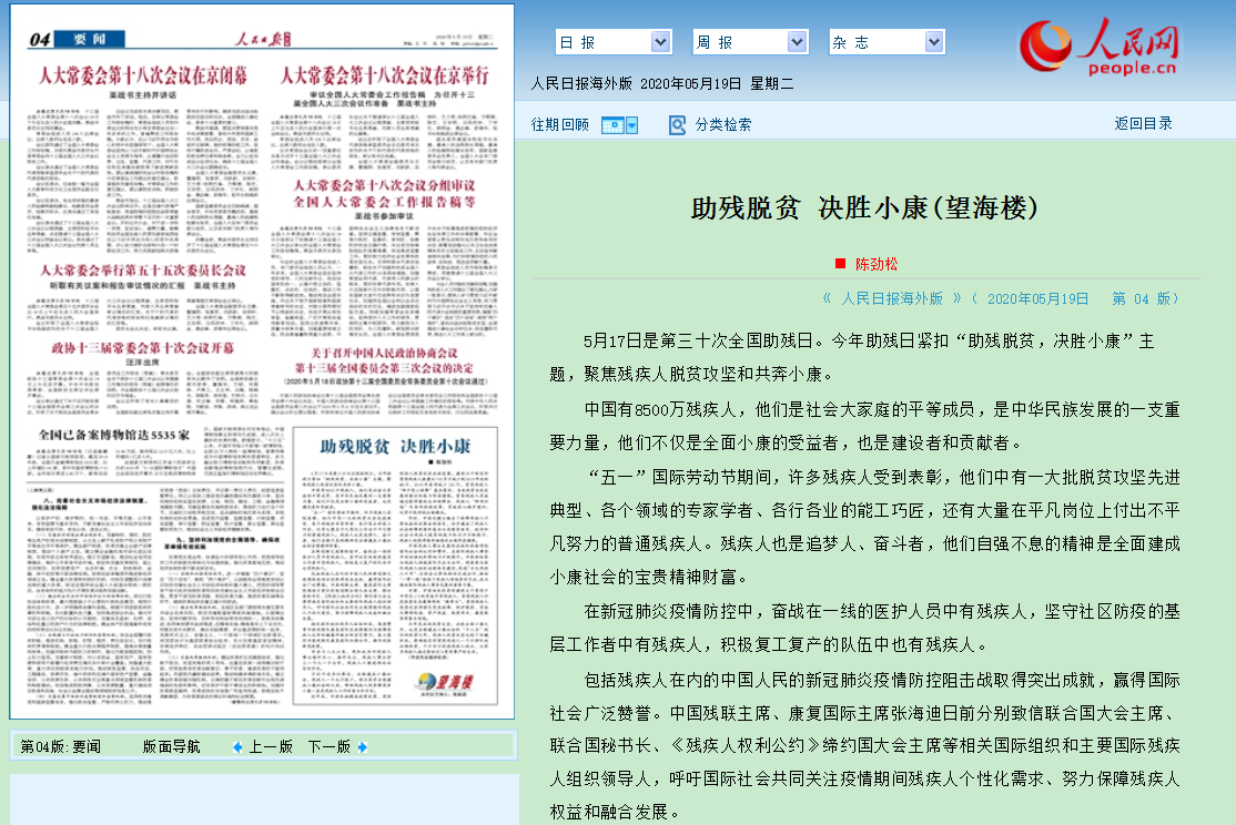 人民日报海外版 助残脱贫 决胜小康(望海楼)
