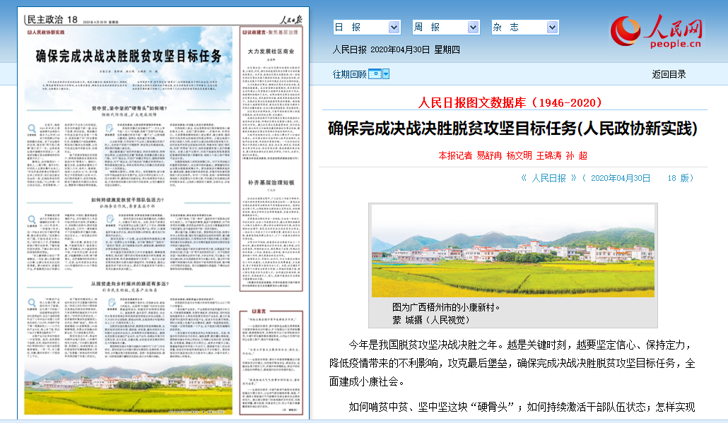 人民日报 确保完成决战决胜脱贫攻坚目标任务(人民政协新实践)