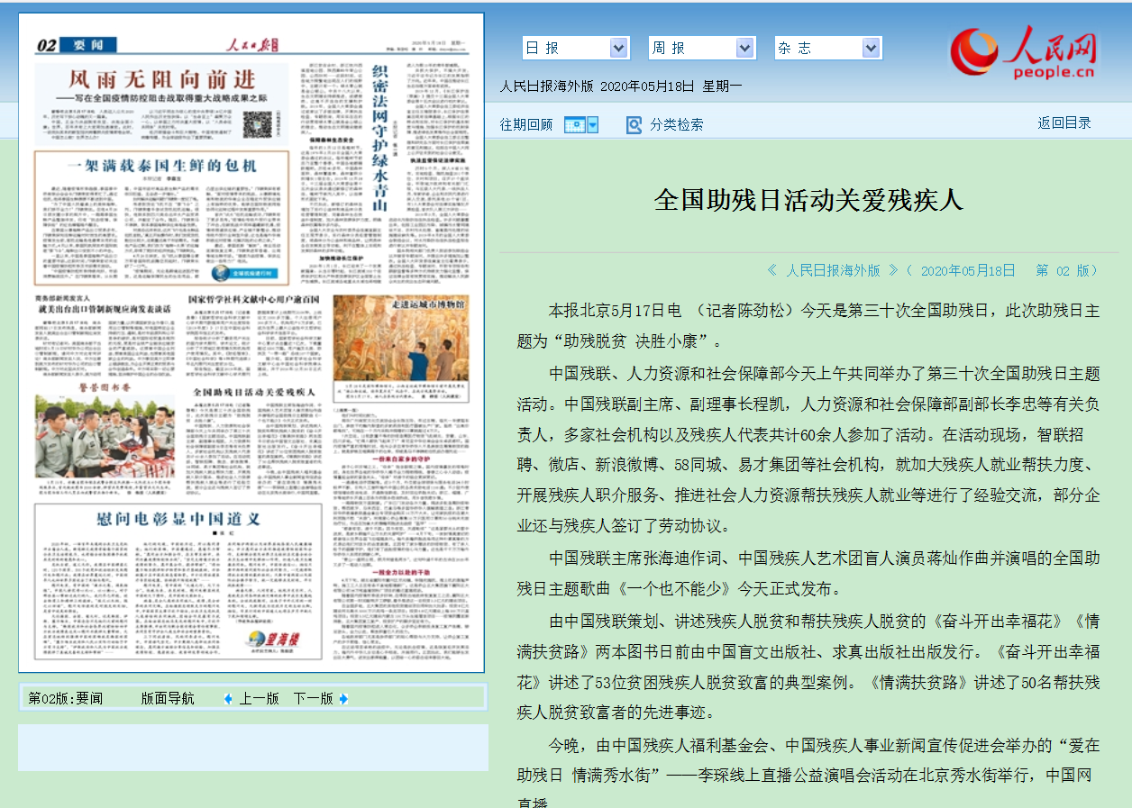 人民日报海外版 全国助残日活动关爱残疾人