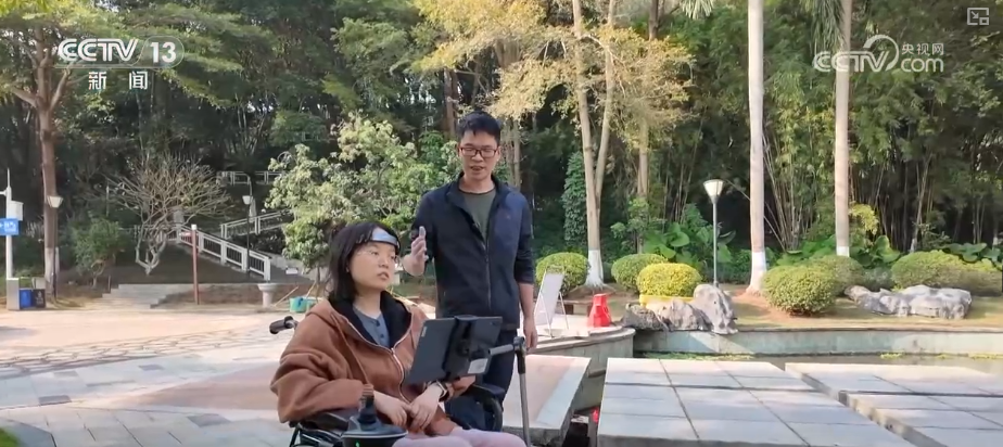 在广州的公园里,工程师朱俊标正与团队成员测试新一代脑控轮椅,通过转动头部、变换眼神,就能操控轮椅前进、转弯、停止。