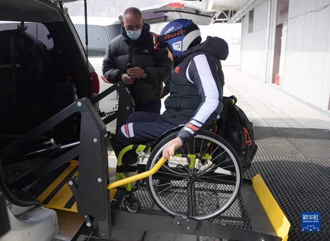 图为为保障残疾人运动员活动便利,北京冬奥会和冬残奥会延庆赛区国家高山滑雪中心为残疾人运动员提供专用车辆(2021年2月23日)。新华社记者 张晨霖 摄