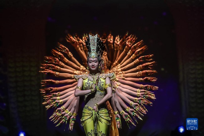 图为中国残疾人艺术团的演员在巴西圣保罗表演《千手观音》(2019年11月6日摄)。新华社发(拉赫尔·帕特拉索 摄)