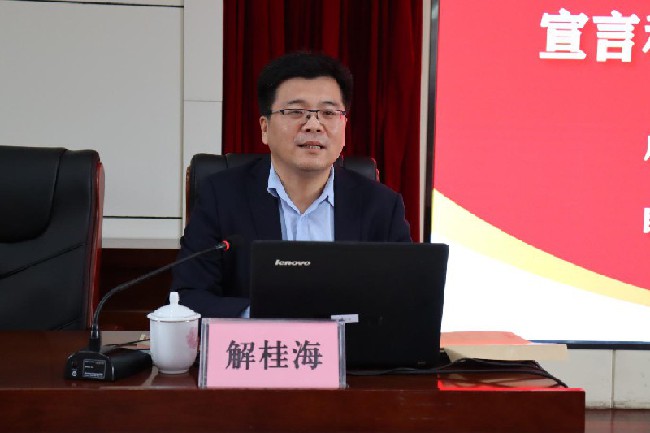 广西社会科学院党组成员、副院长,广西党委讲师团特聘教授解桂海作了题为《坚持和发展中国特色社会主义的政治宣言和行动纲领》的宣讲报告,解桂海介绍了党的二十大报告的基本框架和主要内容,着重从党的二十大的战略定位、大会主题、实践基础、理论指导、基本路径、根本保证、团结要求等七个方面,对党的二十大精神进行系统宣讲和深入阐释。
