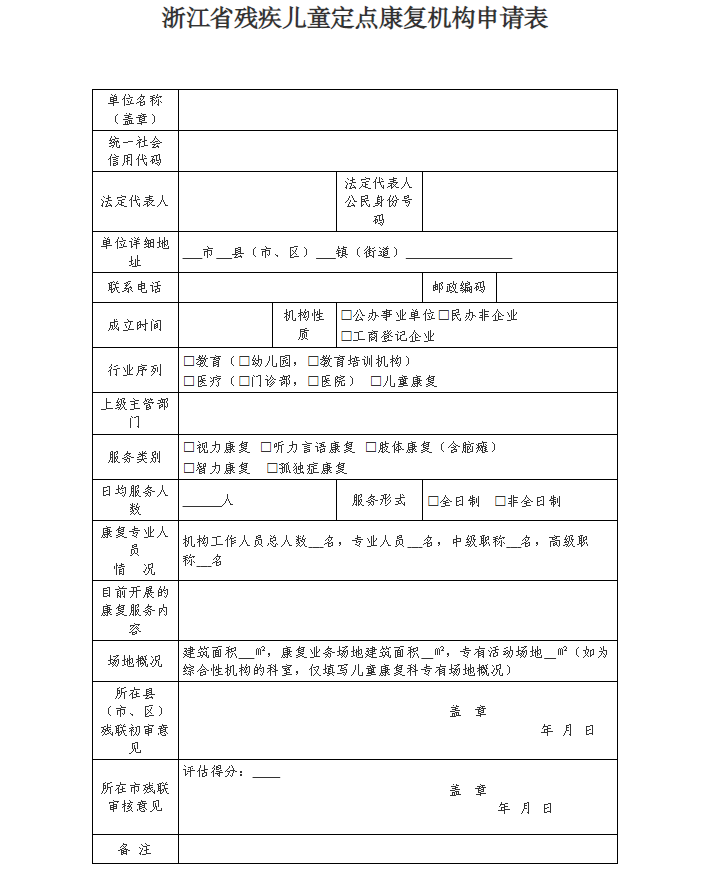 附件:1.浙江省残疾儿童定点康复机构申请表