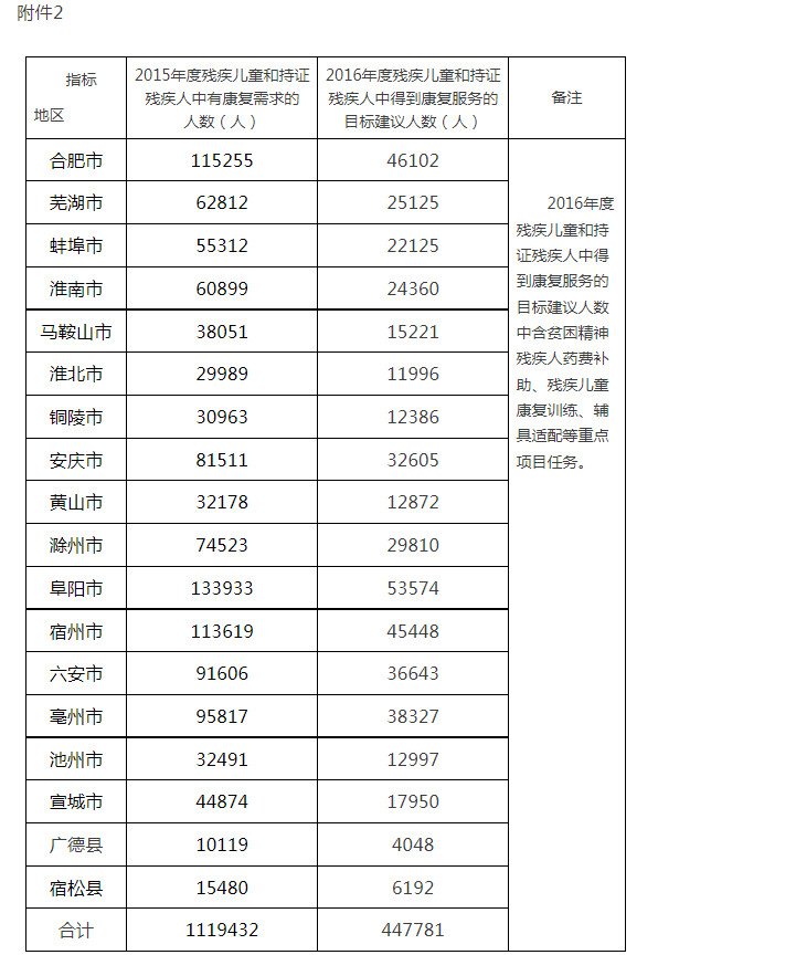2.残疾人精准康复服务行动2016年度任务指标建议表