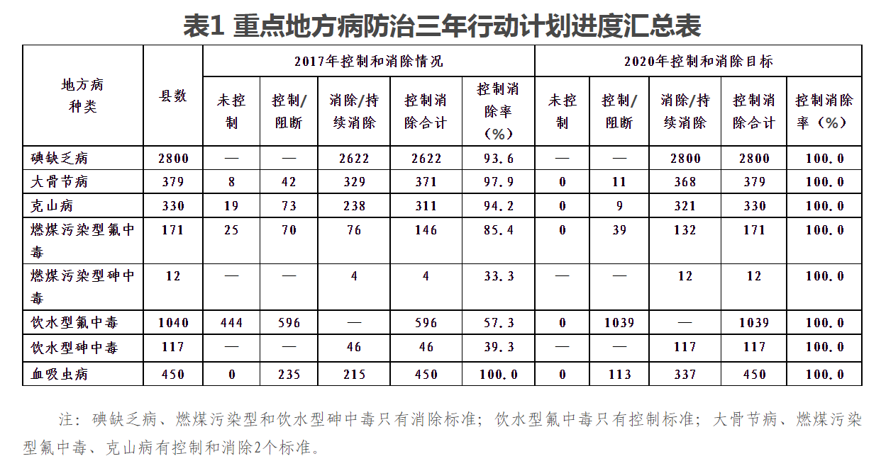 助力国家脱贫攻坚,3年之内(2020年底)持续消除碘缺乏危害,保持基本消除燃煤污染型氟砷中毒、大骨节病和克山病危害,有效控制饮水型氟砷中毒、饮茶型地氟病和水源性高碘危害,有效控制和消除血吸虫病危害,防治目标与脱贫攻坚任务同步完成。