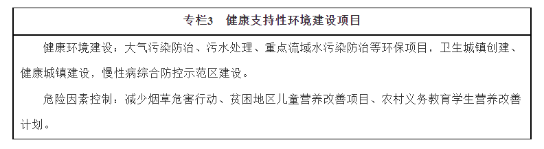 1.建设健康的生产生活环境。推动绿色清洁生产,改善作业环境,严格控制尘毒危害,强化职业病防治,整洁城乡卫生,优化人居环境,加强文化、科教、休闲、健身等公共服务设施建设。建设健康步道、健康主题公园等运动健身环境,提高各类公共体育设施开放程度和利用率,推动有条件的学校体育场馆设施在课后和节假日对本校师生和公众有序开放,形成覆盖城乡、比较健全的全民健身服务体系,推动全民健身和全民健康深度融合。坚持绿色发展理念,强化环境保护和监管,落实大气、水、土壤污染防治行动计划,实施污染物综合控制,持续改善环境空气质量、饮用水水源水质和土壤环境质量。建立健全环境与健康监测、调查、风险评估制度,降低环境污染对健康的影响。