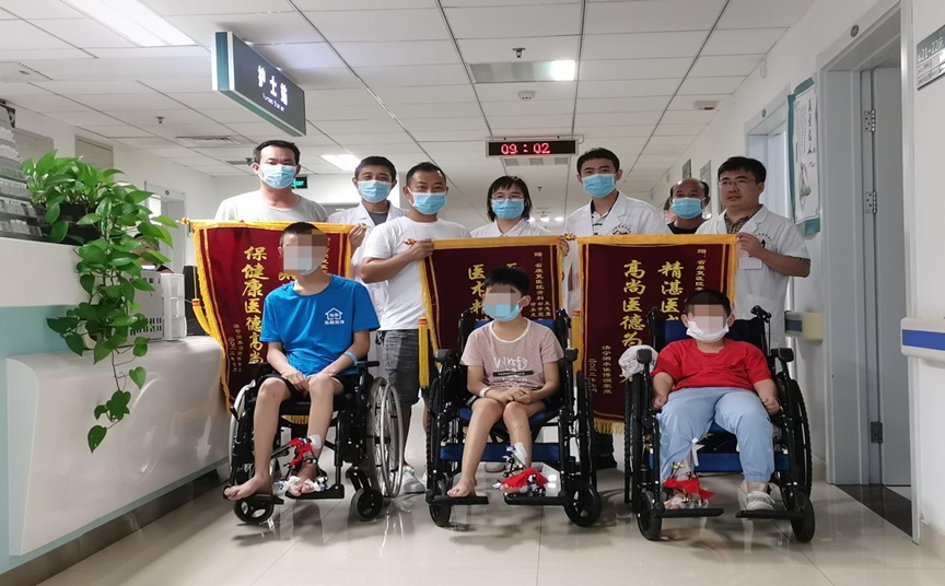 图为肢残儿童在定点医院接受了肢残矫治手术,实现了“行走自如”的愿望