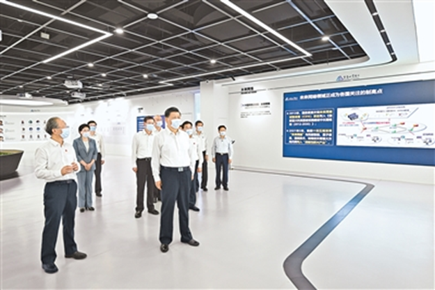 5日下午,习近平抵达苏州后,首先乘车前往苏州工业园区考察。在园区展示中心,习近平听取苏州市产业发展和园区整体情况介绍,察看创新发展成果展示。习近平强调,高科技园区在科技自立自强中承担着重大而光荣的历史使命,要加强科技创新和产业创新对接,加强以企业为主导的产学研深度融合,提高科技成果转化和产业化水平,不断以新技术培育新产业、引领产业升级。要继续扩大国际合作,努力打造开放创新的世界一流高科技园区。