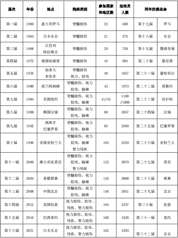 历届残奥会情况