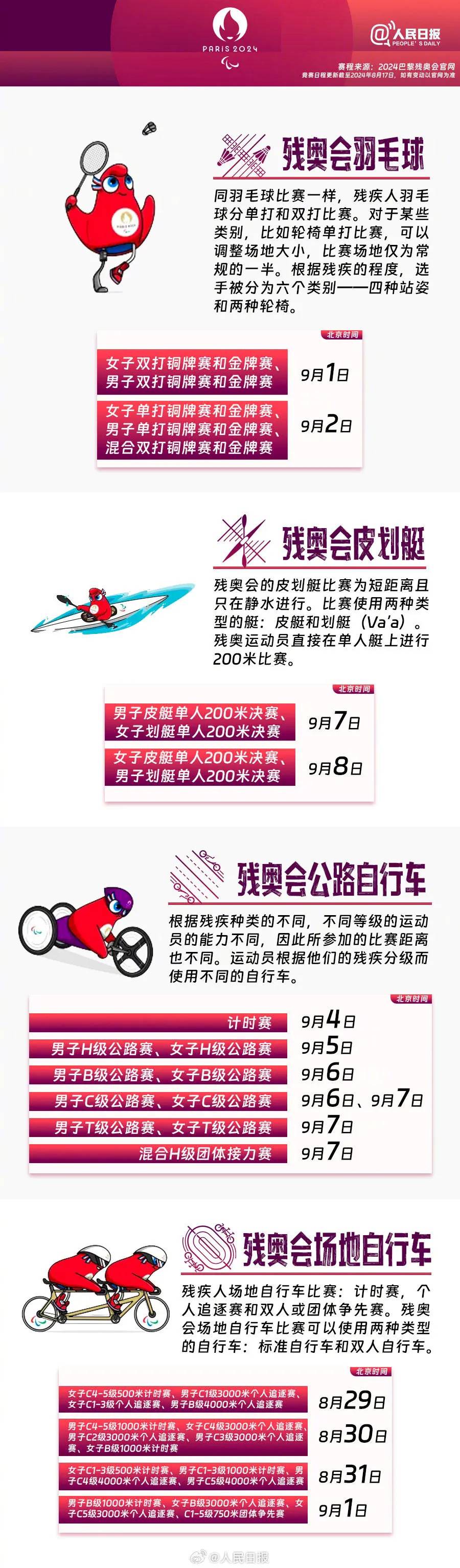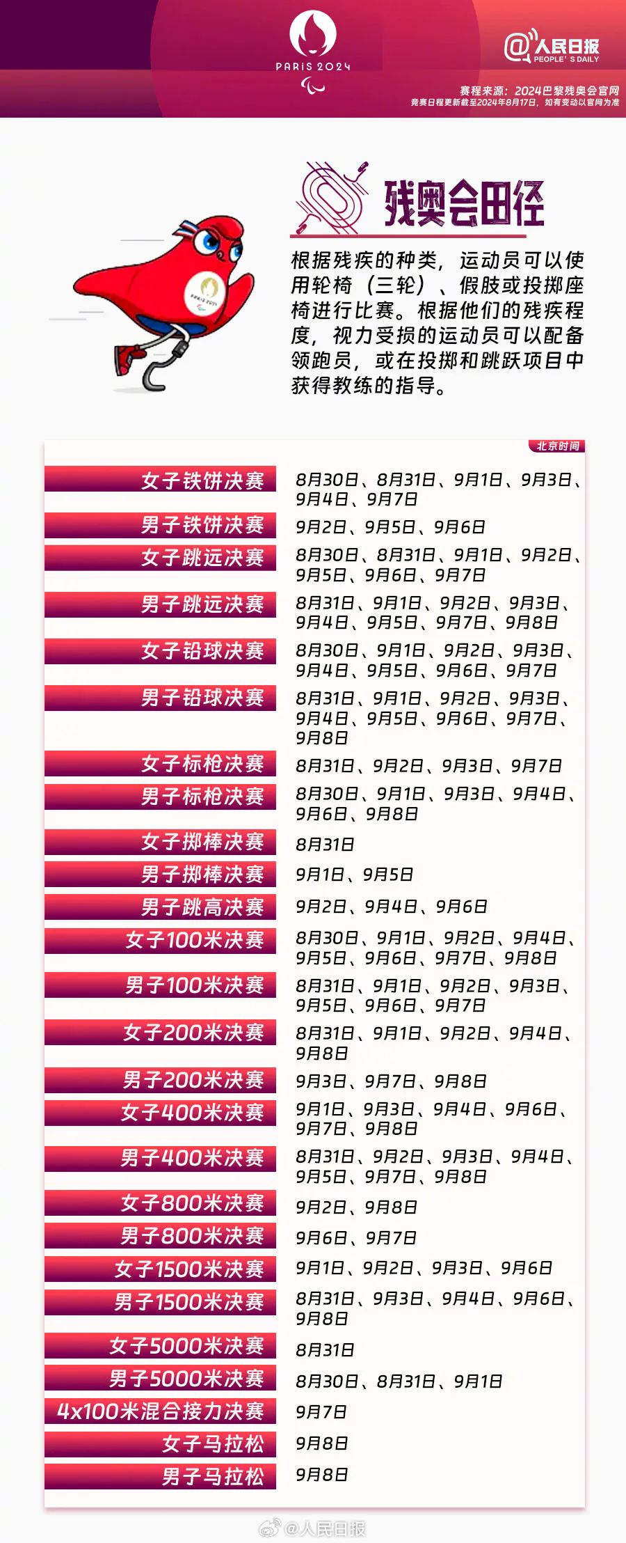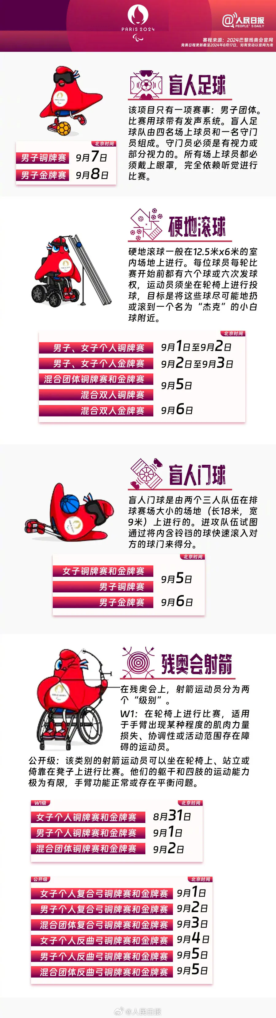赛程来源:2024巴黎残奥会官网