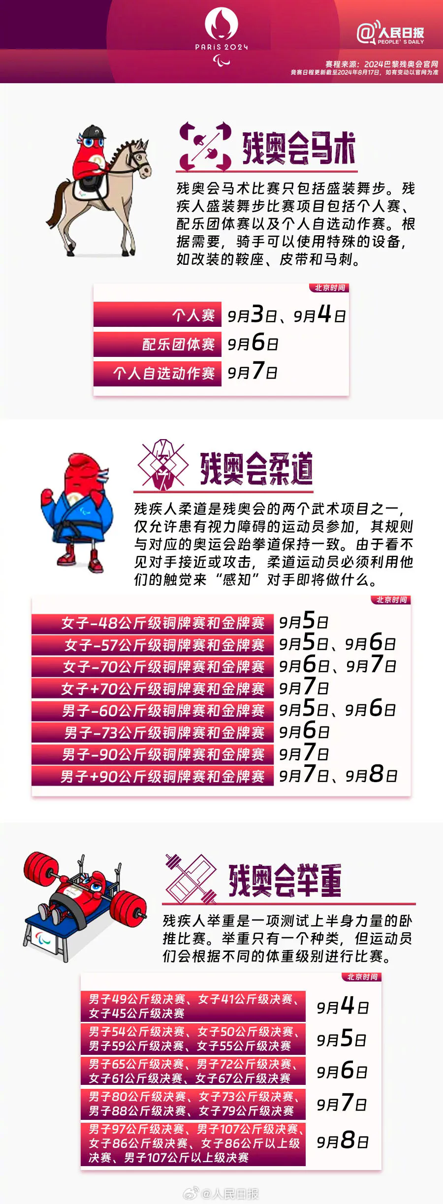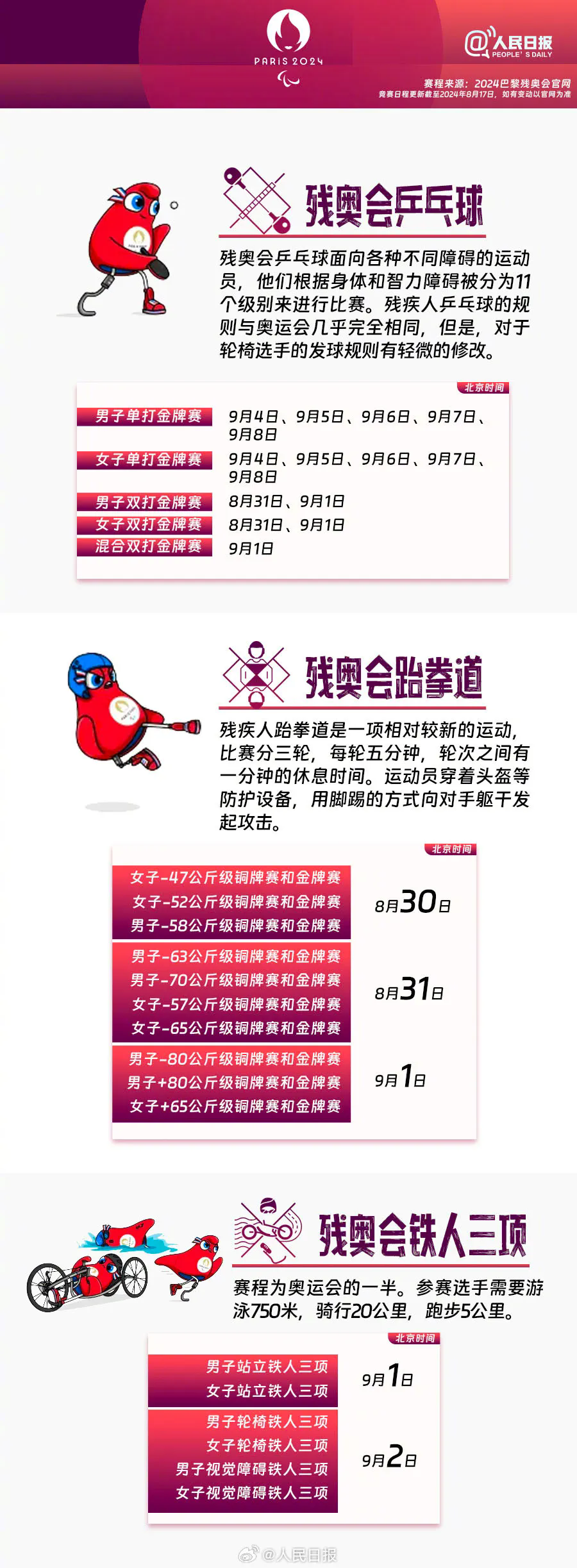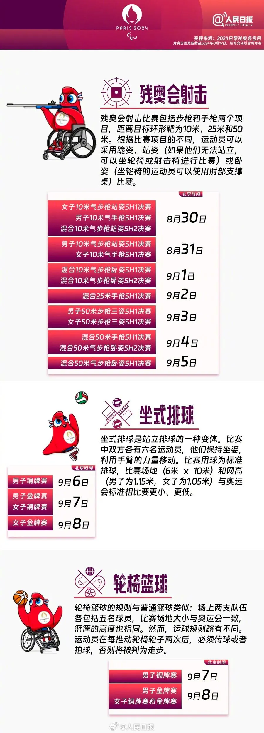 赛程来源:2024巴黎残奥会官网