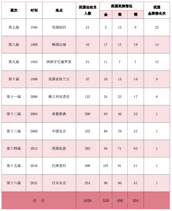 我国参加往届夏季残奥会一览表