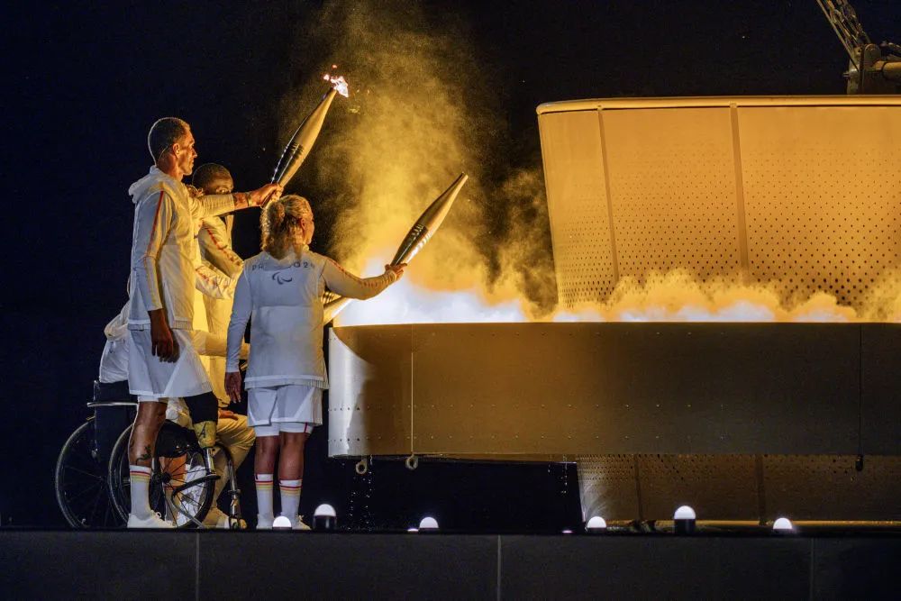 8月28日,火炬手在巴黎残奥会开幕式上点燃主火炬。新华社记者 黄伟 摄