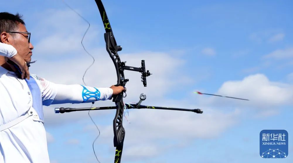 巴黎残奥会中国体育代表团射箭运动员甘俊在训练中。