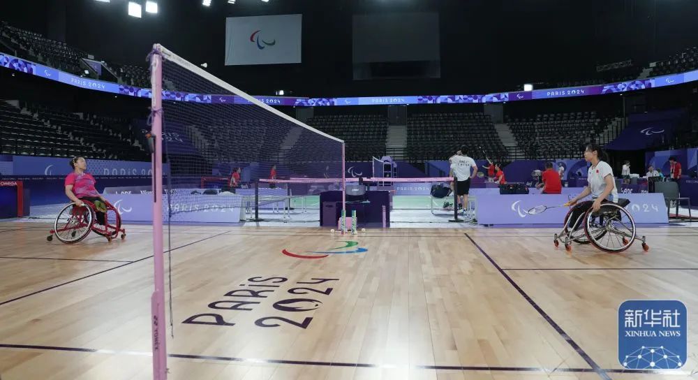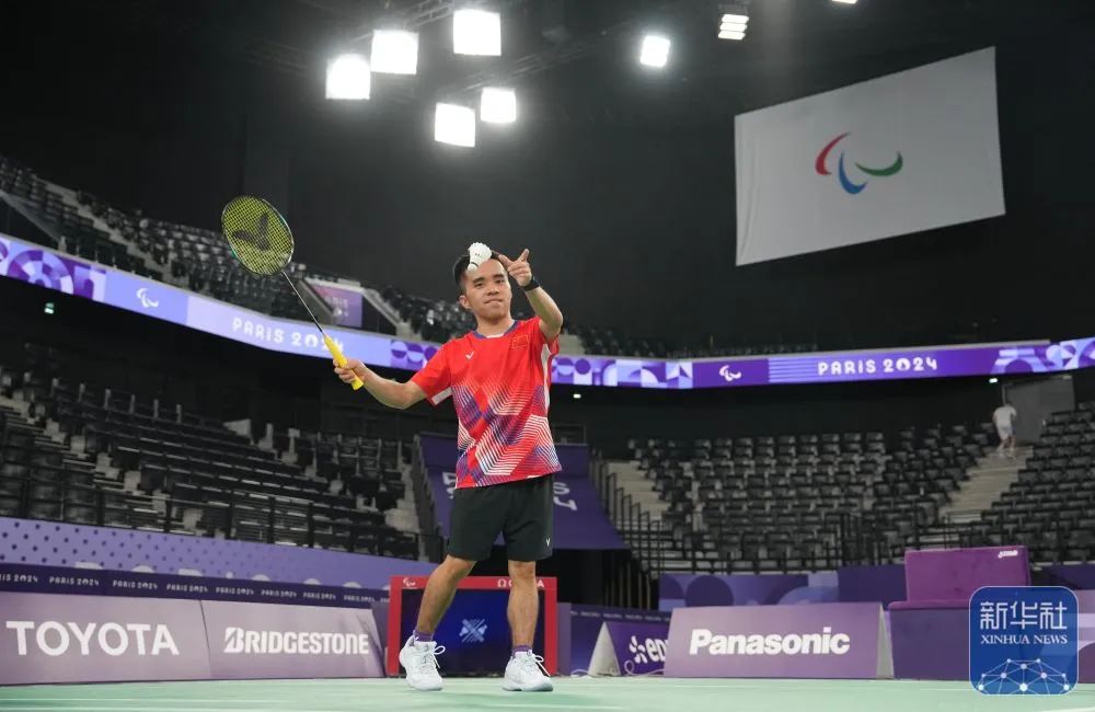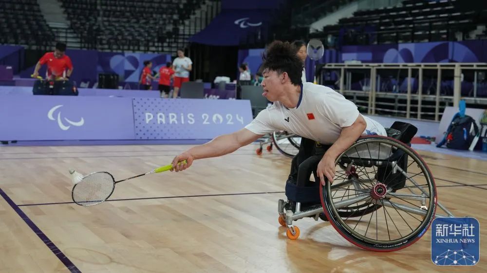 巴黎残奥会中国体育代表团羽毛球运动员在训练中。