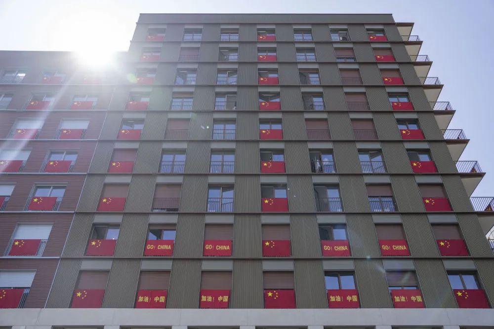 巴黎残奥会中国体育代表团总人数516人,其中运动员284人,教练员、工作人员、竞赛辅助人员232人,居住在残奥村5号与6号大楼。两栋楼的外立面上,挂满醒目的五星红旗,以及用中法英三种文字写就的“加油!中国”的横幅。