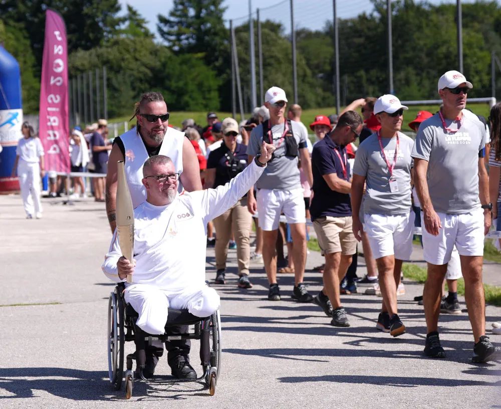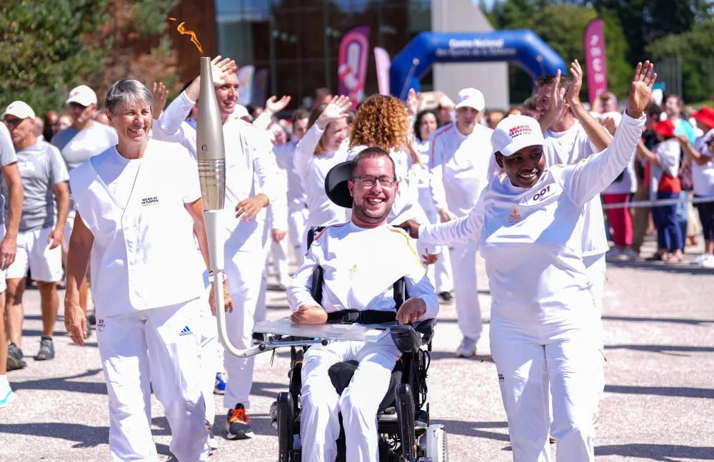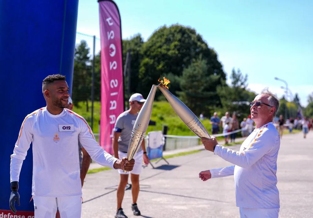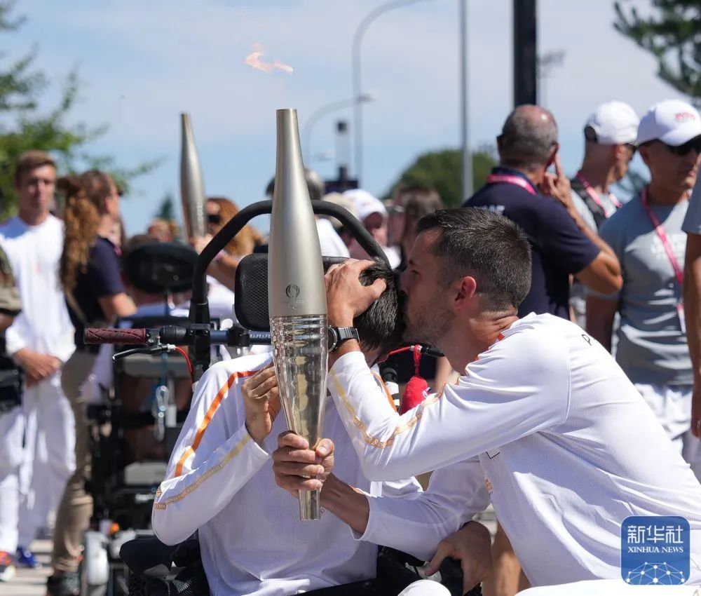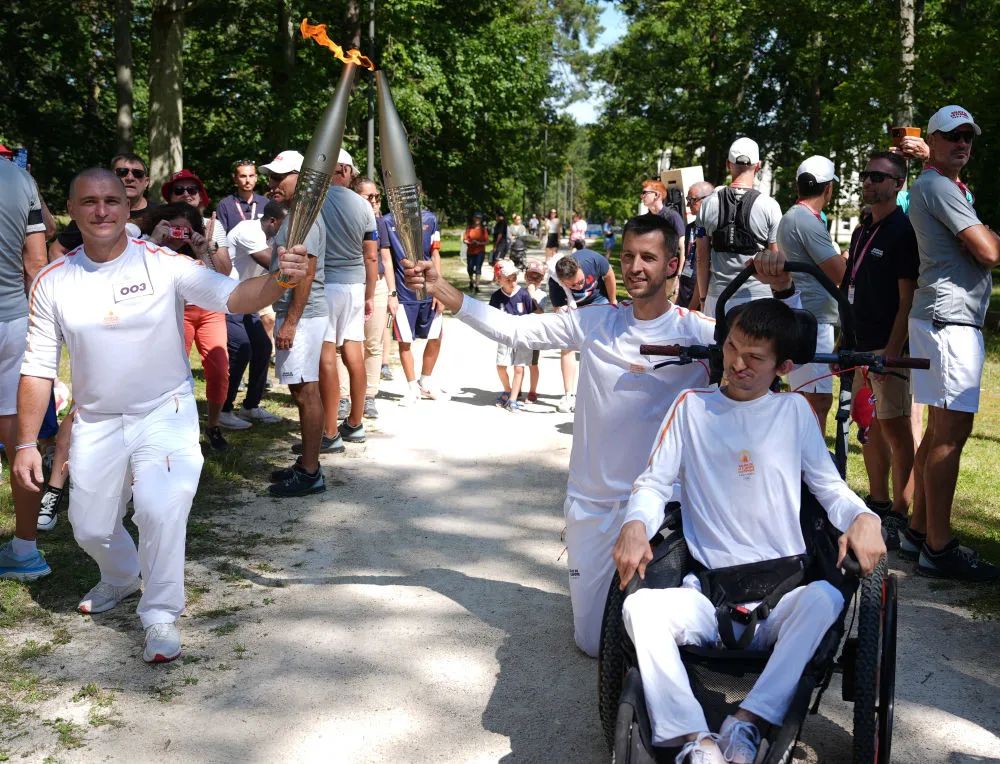 8月27日,巴黎残奥会火炬传递在法国枫丹白露举行。