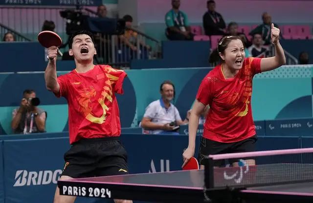 巴黎残奥会乒乓球混双17级决赛在两对中国组合间展开,茅经典搭档赵帅,以3:0轻取熊桂艳和彭伟楠。同为29岁的茅经典和赵帅,同时得到了各自第五枚残奥金牌。