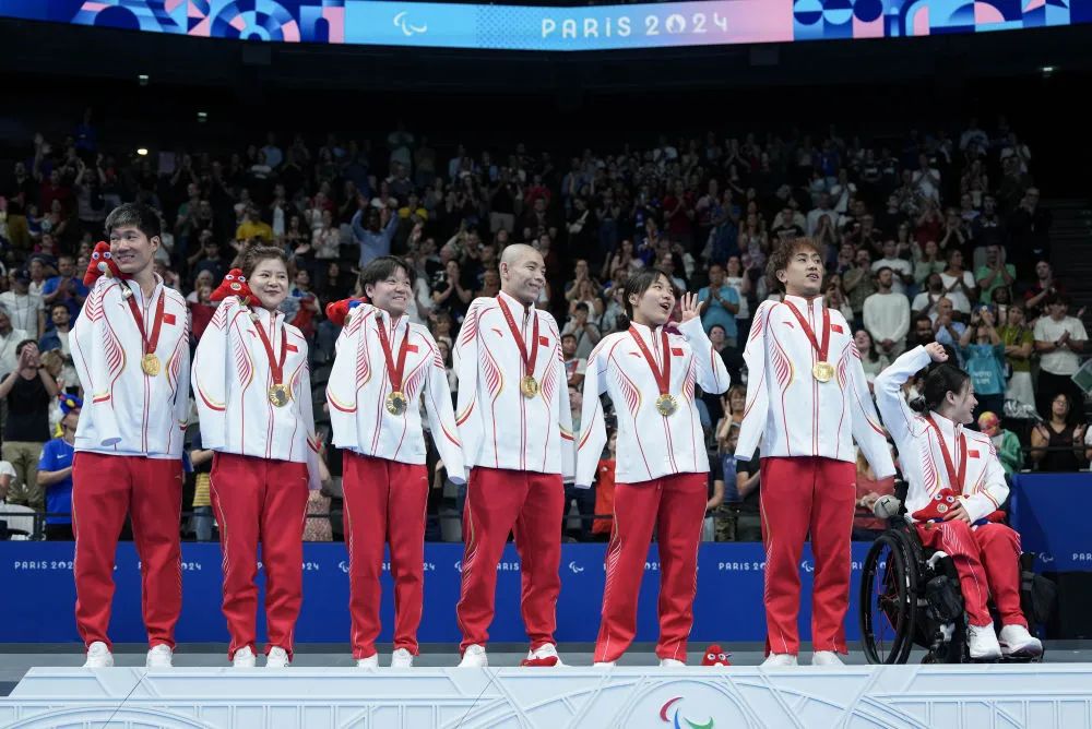 新华社巴黎8月30日电 30日晚的巴黎拉德芳斯体育馆,巴黎残奥会男女混合4X50米自由泳接力20分决赛上演。诸多目光被中国队最后一棒选手吸引——他不戴泳帽、剃了光头,抵达终点时用头奋力撞向池壁,为中国队锁定金牌,并以2分14秒98打破世界纪录,领先排名第二的美国队4.01秒。