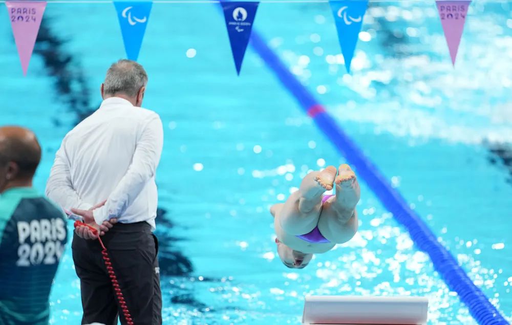 没有双臂,他入水不算快,但一进入泳池,他高速拍打的双腿就如同“涡轮增压小马达”,推着他一口气撞上终点,与队友彭秋萍、袁伟译、蒋裕燕一同见证五星红旗在残奥赛场升起。