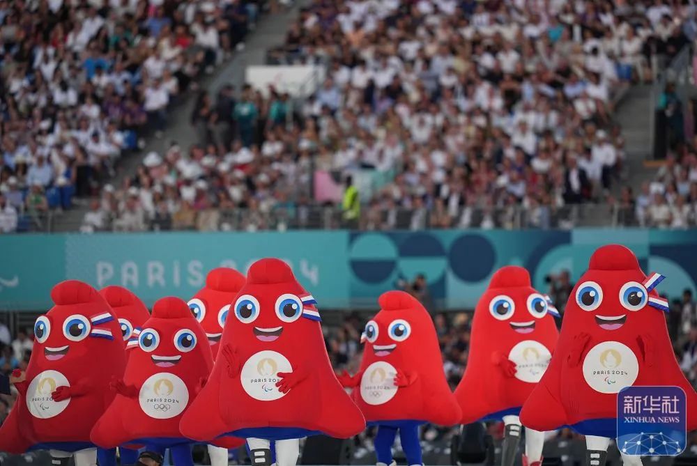 这是开幕式上的巴黎奥运会与残奥会吉祥物。新华社记者 高静 摄