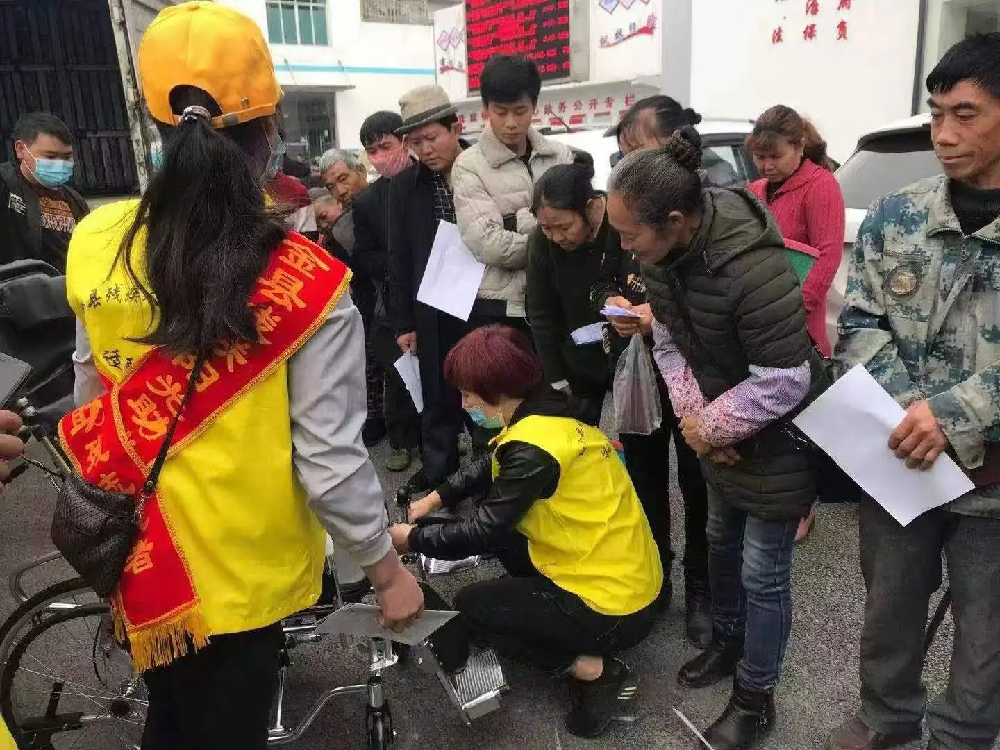 图为贵州省毕节市织金县残疾人辅助器具适配中心到村(社区)为残疾人朋友适配辅具,并现场讲解各类辅具的使用和保养