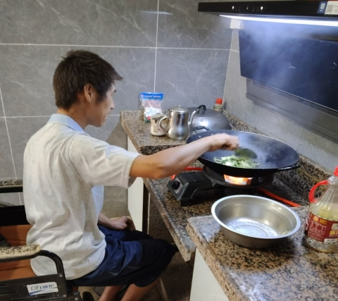 图为江华县沱江镇万石洞村智力残疾人谢祥德,该户“一户三残”,其母亲郑玉翠因小腿截肢无法行走,需要其父亲(视力残疾)及弟媳在家照顾,县残联通过家改工作入户了解情况后,为其家庭安装了低位灶台,为郑玉翠定制了假肢,解决了郑玉翠行走问题及做饭难问题,其儿媳也可放心去广东打工,增加了家庭收入