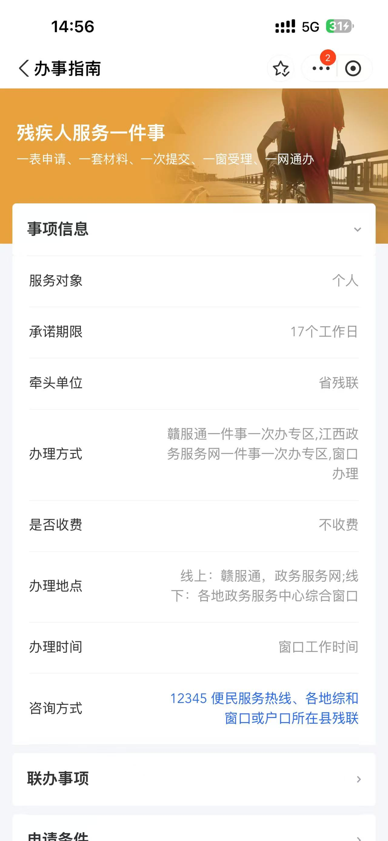 建成高效办成“一件事”和“赣好惠残”一体化平台,残疾人办事更加高效便捷。紧盯残疾人民生重点和高频事项“小切口”,牵头5部门出台《残疾人服务“一件事”实施方案》,依托“赣服通”“政务服务网”,实现残疾人办证、就业服务、社会保障补贴等10个事项“一张表申请、一个窗口办理、最快只跑一次办好”。以打造精准化、精细化、智能化服务和管理模式为目标,建成“赣好惠残”一体化平台,推动残疾人事业治理体系和治理能力现代化。平台主要围绕“一库、一图、一策、一网、一屏、一卡”“六个一”建设完成,实现涉残数据共享,基本形成“一数一源”,残疾人办事更加高效便捷。