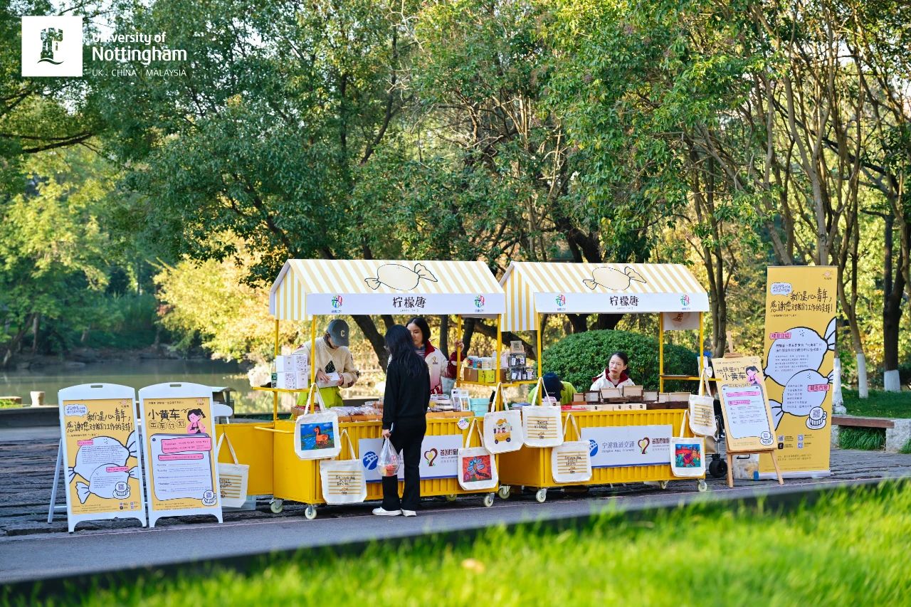 图为103位心智障碍青年组成的“柠檬唐”品牌在宁波诺丁汉大学出摊