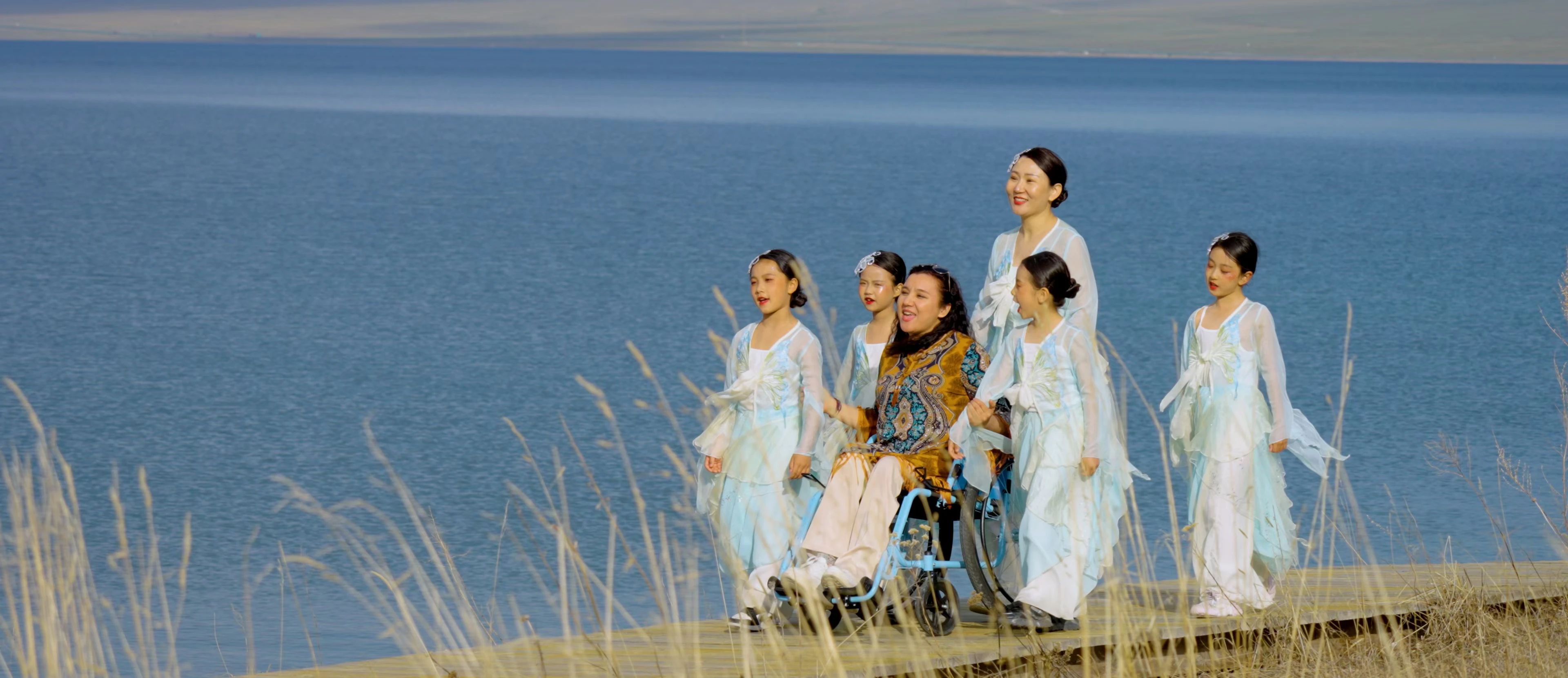 图为《上春山》视频拍摄时博州和乌鲁木齐的视力和肢体障碍人士在赛里木湖踏青
