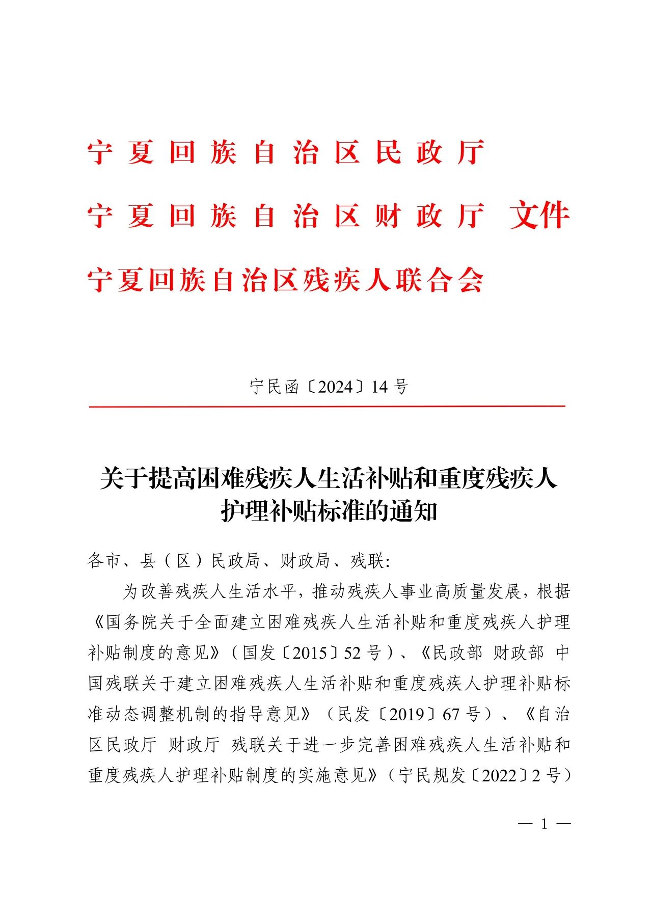 2024年1月1日起,全区困难残疾人生活补贴标准从每人每月110元提高到115元,重度残疾人护理补贴标准从每人每月120元提高到130元。