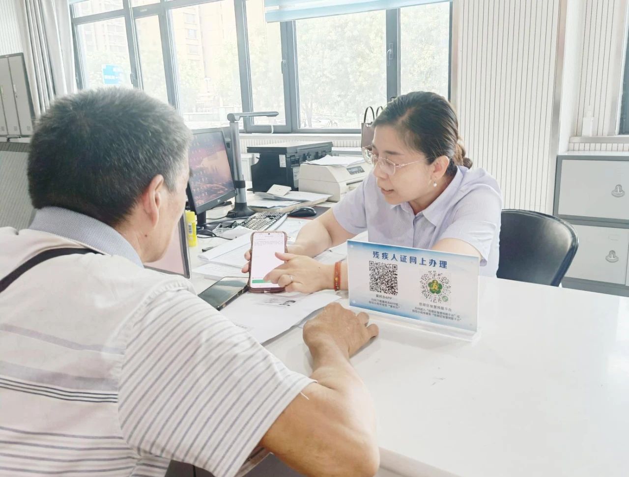 图为邢台市信都区残联窗口人员帮助残疾人提交“网上办”申请