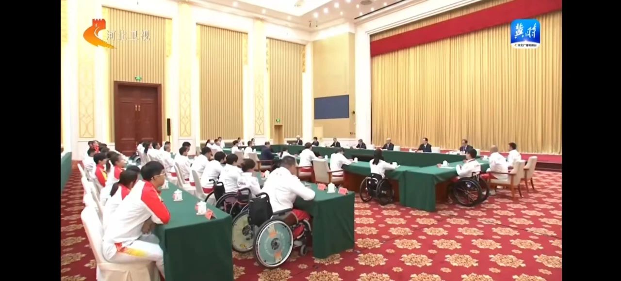 图为省领导在石家庄与参加第17届夏季残奥会的河北运动员、教练员座谈
