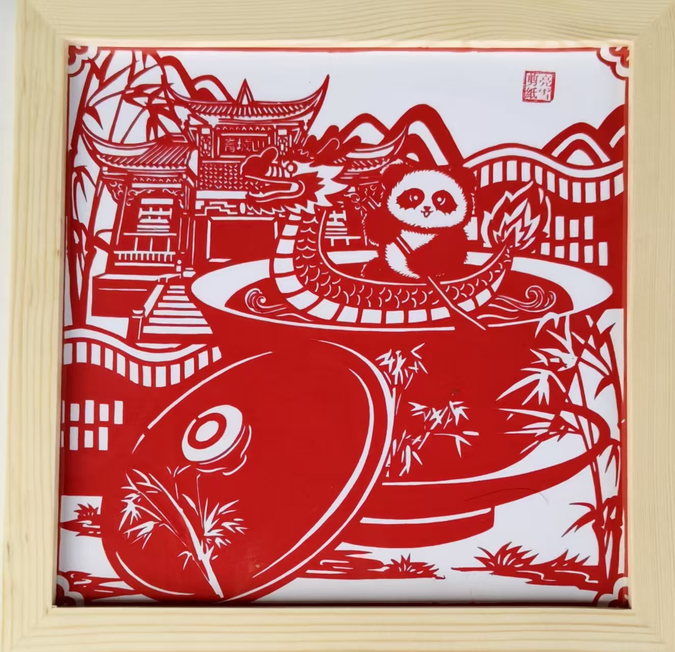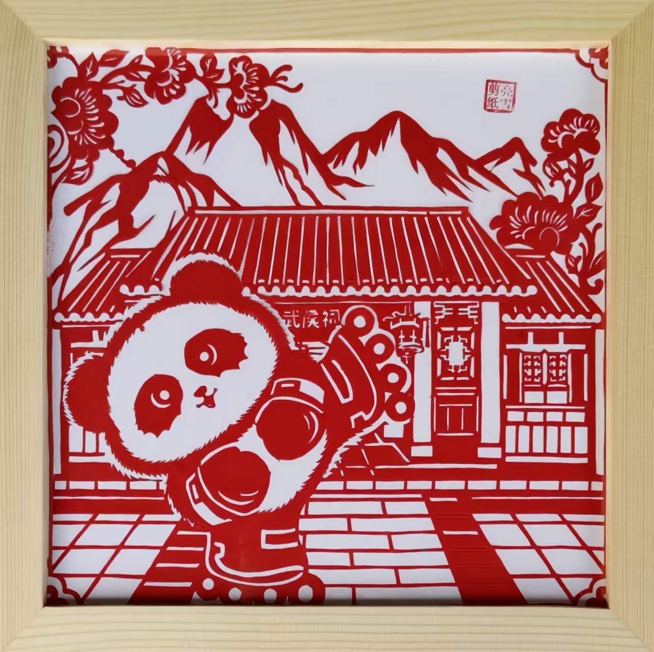 作品简介:《熊猫游历记》剪纸艺术摆件以传统非遗技艺为载体,将萌态熊猫融入中国人文地理脉络。画面中,憨态可掬的熊猫穿梭于故宫、三星堆等中国各类元素之间,以现代视角解构故宫、古蜀等文化符号。