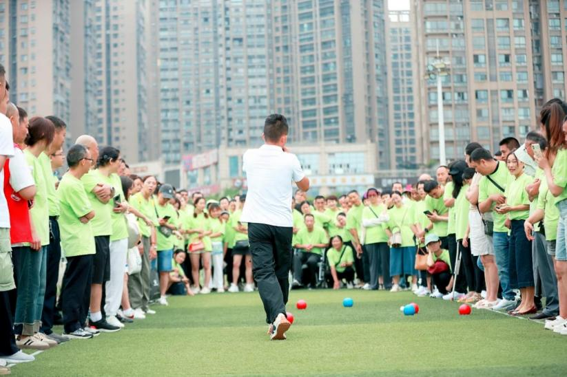 地掷球项目是大邑县残联通过走访调研筛选出的县级残疾人康复健身体育运动项目,全县11个镇(街道)残联共组建11支地掷球运动队,参赛人员以肢体、听力、言语等类别残疾人为主。从2024年起,大邑县常态化开展地掷球比赛活动,按市、县、镇三级分层分级开展比赛。县残联聘请了专业教练,常态化培训残疾人运动员,特别是为下肢残疾人制定专门的训练计划,提升了残疾人参与体育活动的积极性。