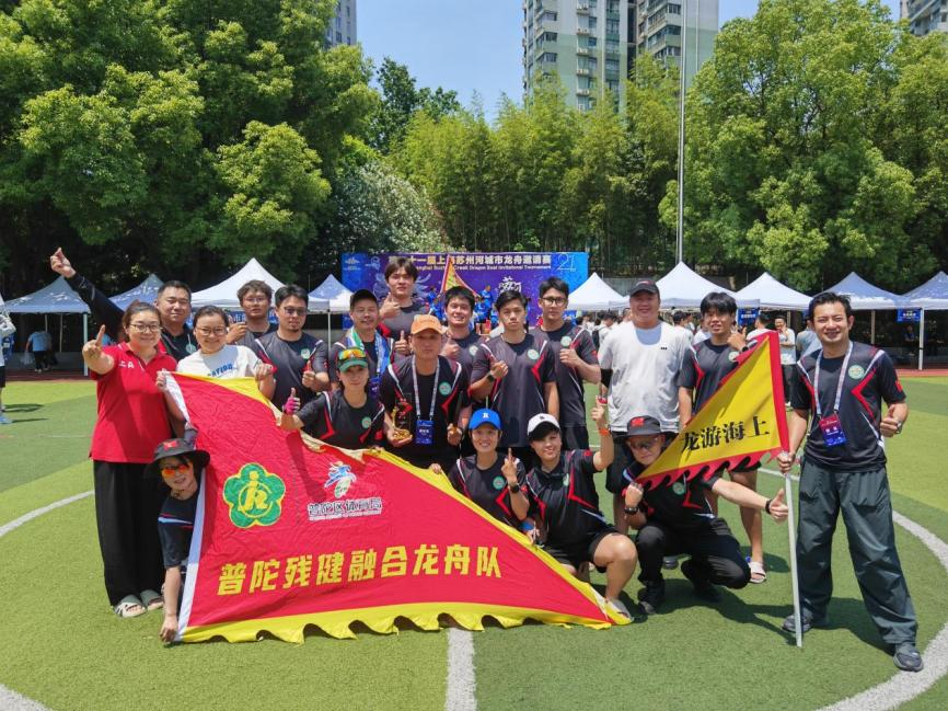 普陀区残健融合龙舟队创建于2022年,是上海市首支残健融合龙舟队伍,拥有30名队员,其中残障队员20人。队伍开创性地构建了“水上+陆上”复合训练模式,不仅形成了科学完备的残障人士训练体系,还建立了针对融合伙伴服务残障人士的专项指导机制。至2025年,累计开展训练202场次,参与长三角龙舟邀请赛等6项以上重要赛事,并承办了市级推广活动,成为上海市残疾人体育工作的闪亮名片和标杆项目。
