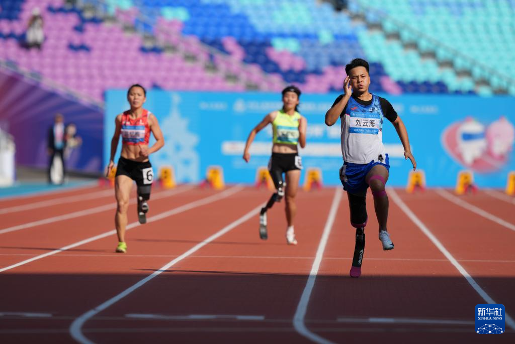 田径女子100米T63级:辽宁队选手刘云海获得第一名